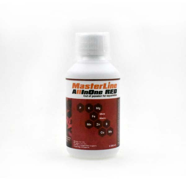 MasterLine All In One Red enthält alle von den Pflanzen benötigten Nährstoffe (jedoch ohne Nitrat) in einer Flasche: 0,1 % P, 3,6 % K, 0,3 % Mg, 0,12 % Fe, 0,036 % Mn, 0,023 % Zn, 0,021 % B , 0,005 % Cu, 0,003 % MoDosierung und Anwendung